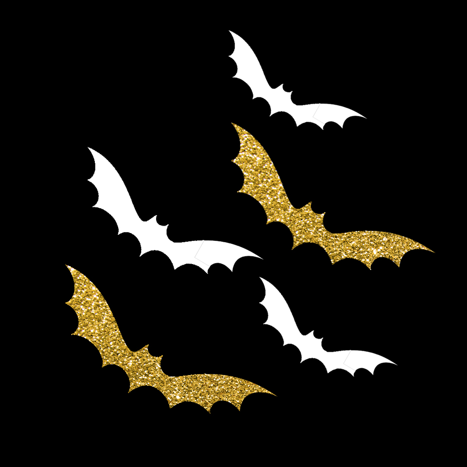 Create the backdrop by spray painting black paper bats from Target with Rustoleum’s Gold Metallic, and then using hot glue to adhere them to this black foam board from Dollar Tree. I have struggled finding bat cutouts ever since making this. Here are some on Amazon.